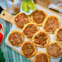 Polvilhe fubá em um prato e molde as esfirras (usamos 60g por unidade).
