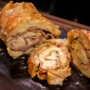 Enrole o frango e amarre para que não abra e não saia o recheio de dentro.