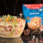 3. Em uma taça coloque uma camada de mousse de maracujá, uma de Panetone Parati e uma de salada de frutas.