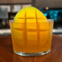 Apresentamos o Spicy Mango, preparado com manga, pimenta, açúcar e tequila ouro, tudo bem coqueteleado e finalizado com bastante gelo e uma fatia de manga.